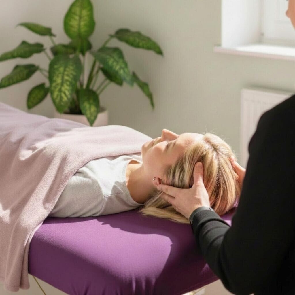 J’active les 32 points en posant mes mains et mes doigts sur des points précis de votre tête.